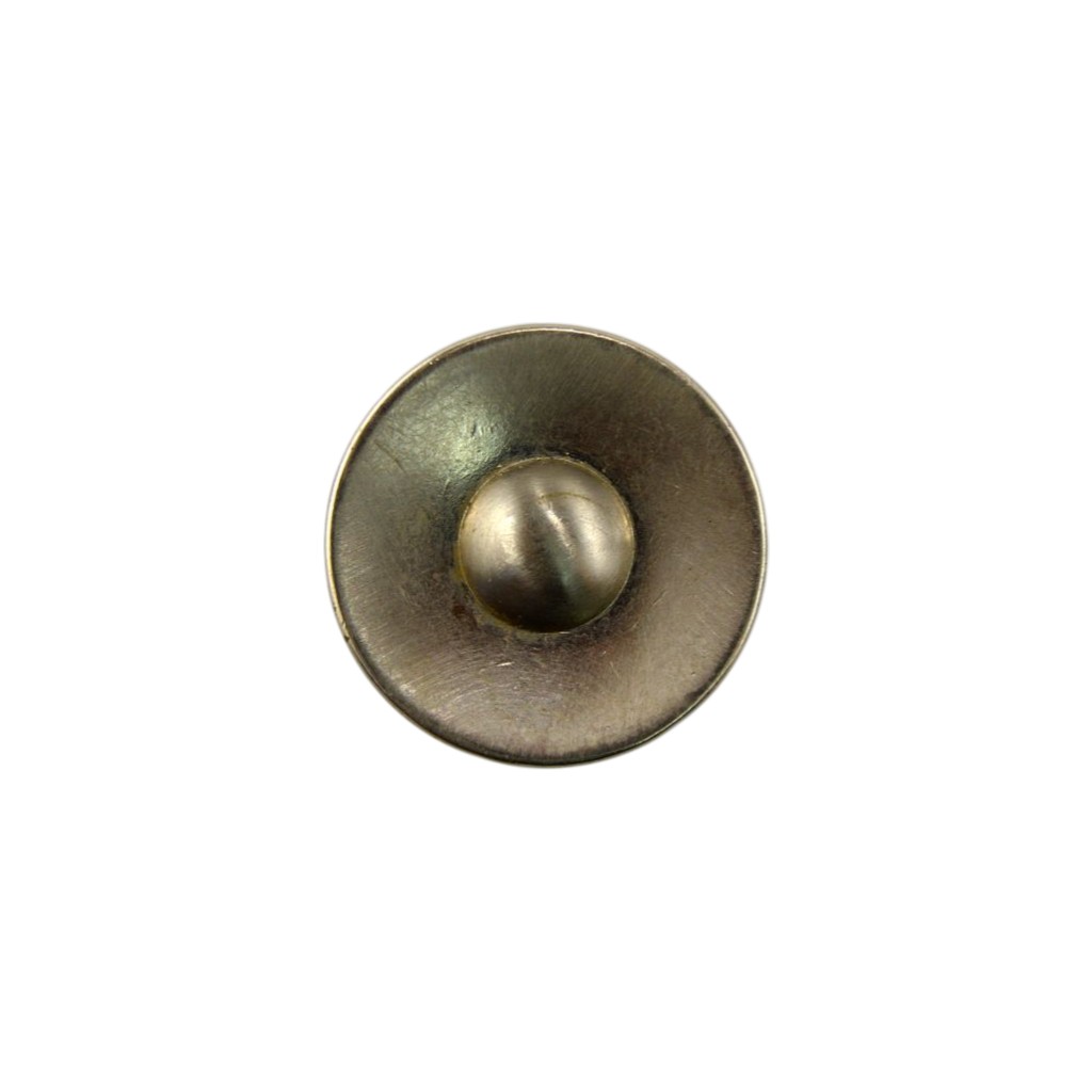 Round Mid Century style knob with a raised center area. The color is silver, almost brushed or nickel color, not shiny enough for chrome. The knob measures 1 1/4″diam.