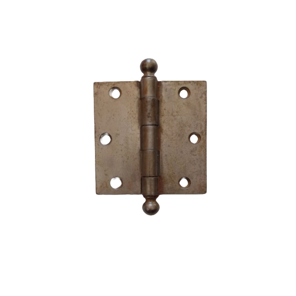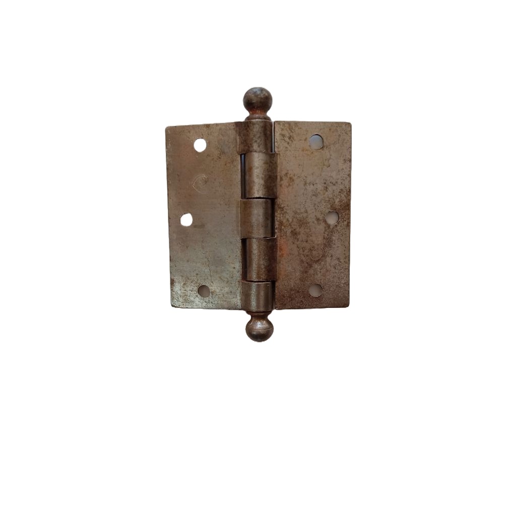 3 1/2″ standard door hinge made by Stanley. It has the sweetheart marking on the back with SW inside the heart. The hinge measures 3 1/2″h a 3 1/2″w. It has ball finials on each end. It is made of steel with a nickel plate. Each side has 3 holes for screw attachment.
