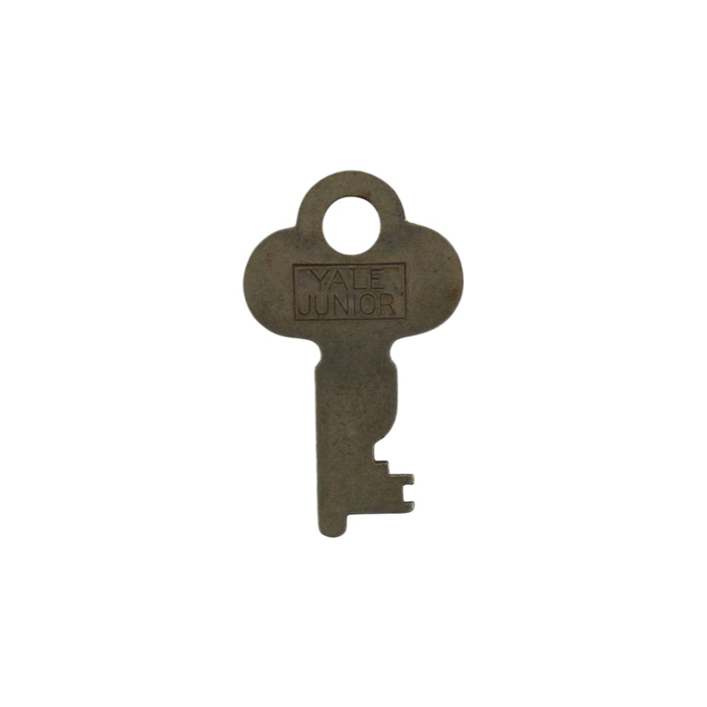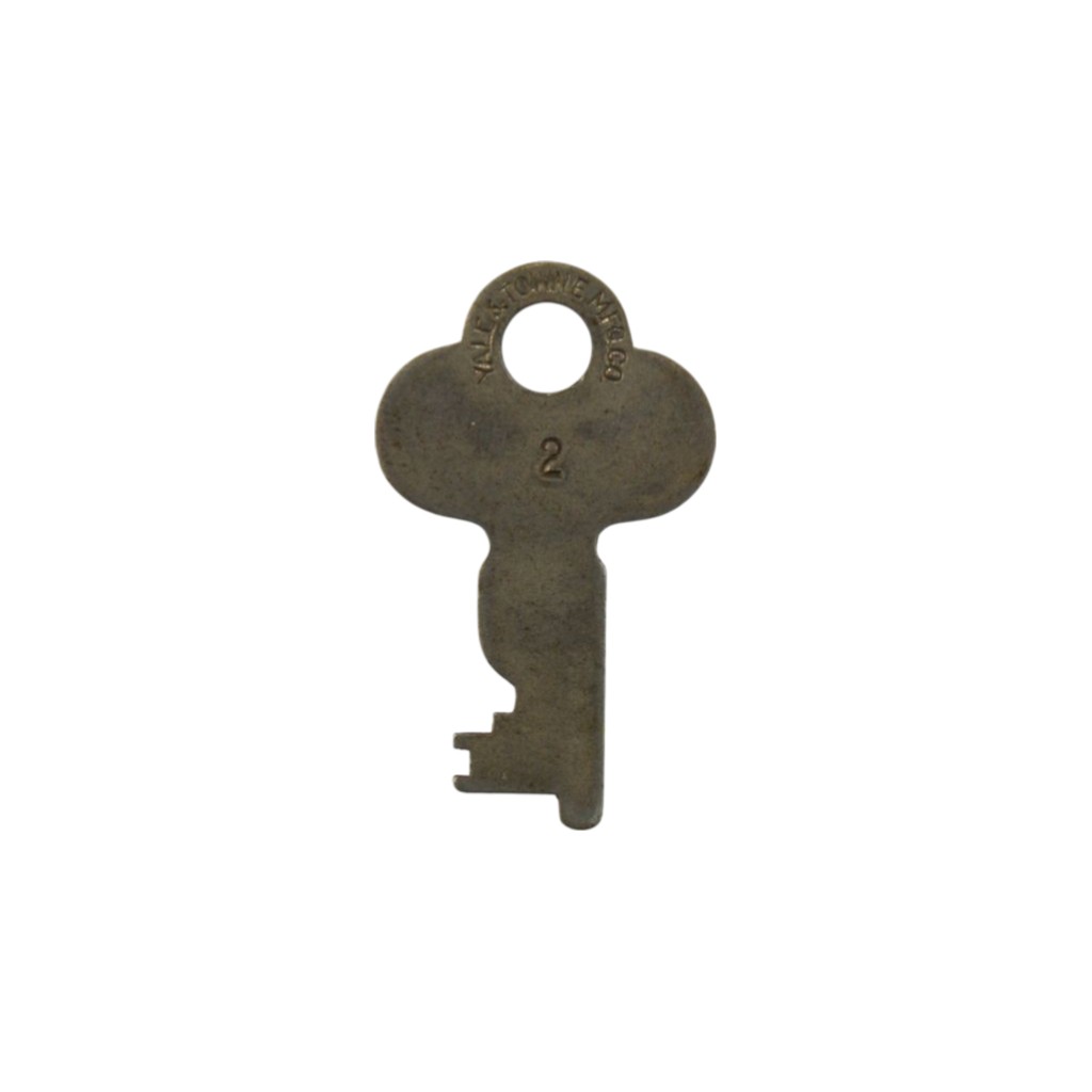 Flat key for a padlock made by Yale & Towne. Marked at the top on one side Yale & Towne Mfg. Co. 2. On the reverse it is marked Yale Junior. The key measures 1 1/4″l with a 5/8″l bit.